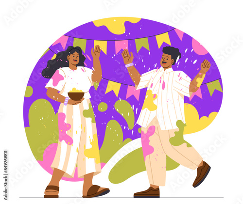 Happy Holi Template Design: Vibrant Indian Festival Celebration with Colorful Splash Background and empty Podium.