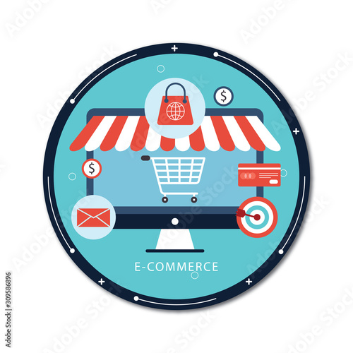 E-commerce shopping icons set. Online shopping icons set and payment elements. Vector illustration