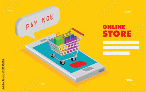 shopping online with shop retail vector. online store smartphone concept suitable for banner application