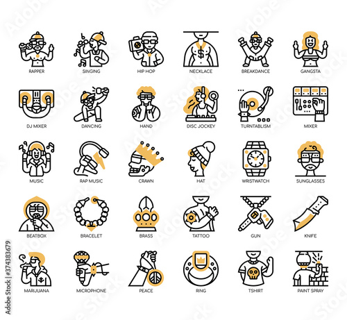 Set of hiphop thin line and pixel perfect icons for any web and app project.