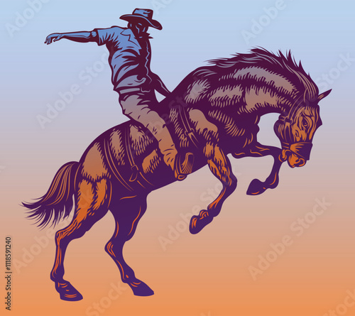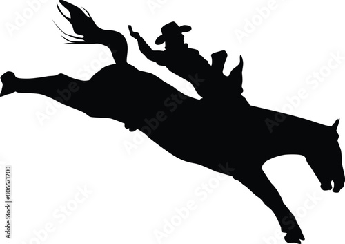 Rodeo silhouette illustration. Men riding a horse for sport activity