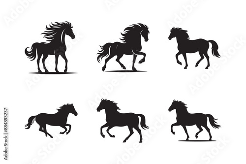 Horse icon silhouette vector set. Animal symbol. Stallion pictogram, flat vector sign isolated on white background.