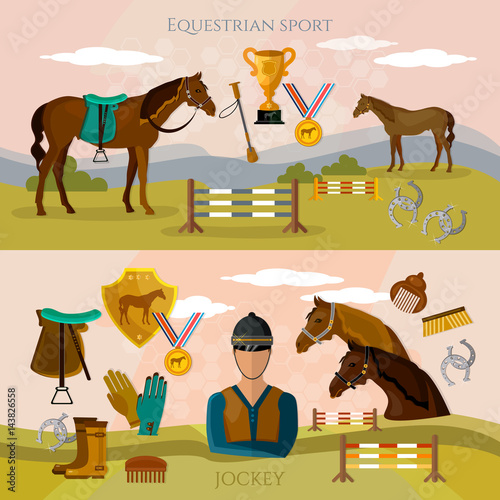 Horse banner line icons set. Equestrian. Vector signs for web graphics