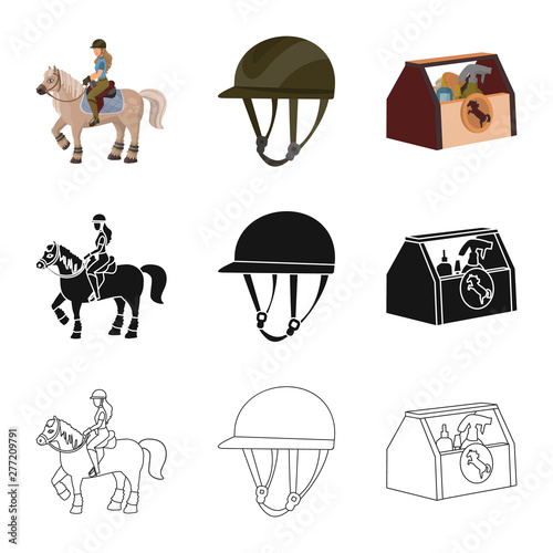 Vector illustration of equipment and riding symbol. Collection of equipment and competition stock symbol for web.