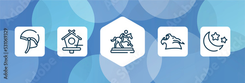 poi nature outline icon set isolated on blue abstract background. thin line icons such as jockey hat, birds house, trophy of horses races, werewolf, moon and stars vector. can be used for web and