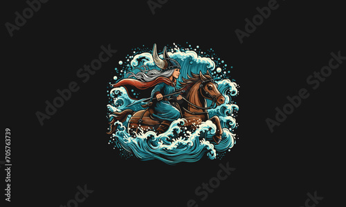 vector image of a cowboy in a hat on a horse with a lasso and a foal in the style of art graphics