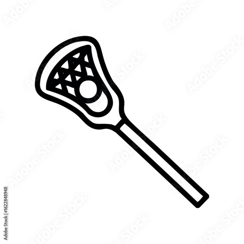 Lacrosse stick and ball in black silhouette representing sports equipment