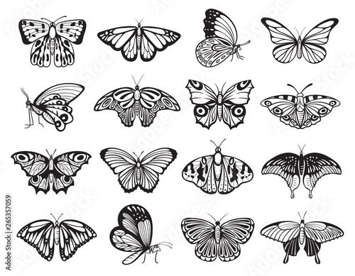 Butterfly silhouette set, wildlife ornament of nature decoration