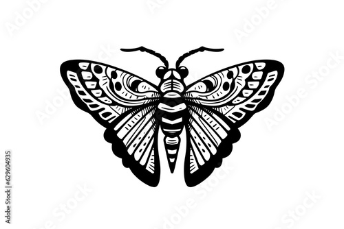 Graphic vector of moth. Illustration for print of t-shirts, mugs, pens, logos, tattoo and other things. Vintage hand drawn line art illustration
