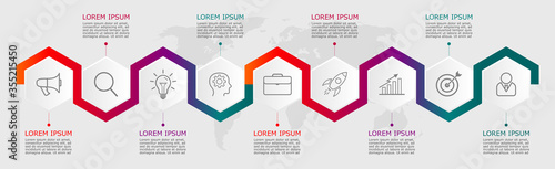 with icons, text, number and 9 options or steps.