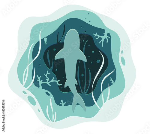 Wavy border in paper cut style. 3d abstract background with cut out deep waves modern cover. Blue color layers with smooth shadow papercut art. Vector card illustration origami environment template.