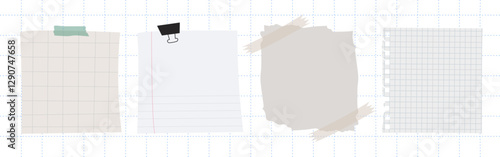 Paper cut pieces set with torn ragged edges, vintage ripped shapes collection , rectangular fragments with uneven borders and frayed perforations. Distressed texture elements for scrapbooking.