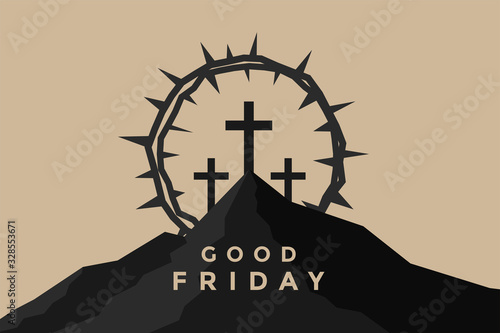 VECTOR ILLUSTRATION OF GOOD FRIDAY. Christian Cross on mountain