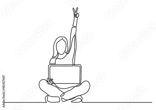 continuous line drawing vector illustration with FULLY EDITABLE STROKE of business person raising hands to heaven