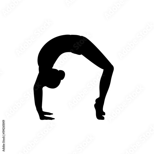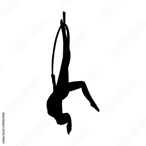 Aerial female gymnast silhouette in hoop. Aerial gymnastics stunt. Vector illustration isolated on white background