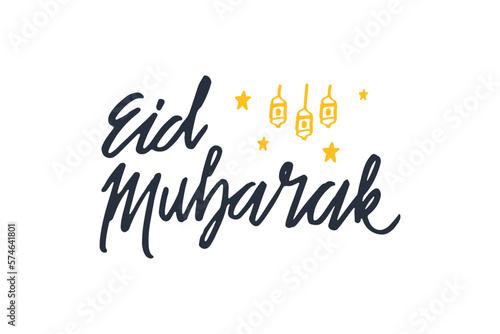 Typography or calligraphy of eid mubarak. Yellow mosque color.