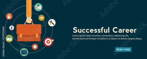 Flat designed banners for business meeting, successful career and brainstorming in flat style.