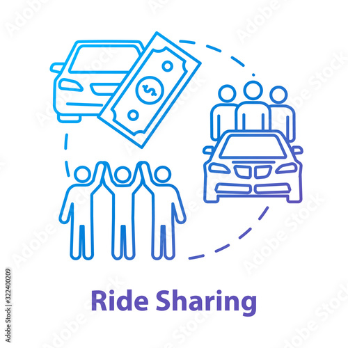 Ride sharing concept icon. Money saving travel, budget tourism, carpooling idea thin line illustration. Inexpensive transportation, collective journey. Vector isolated outline RGB color drawing