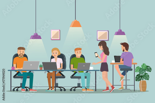 Coworkers freelancer team share open office space