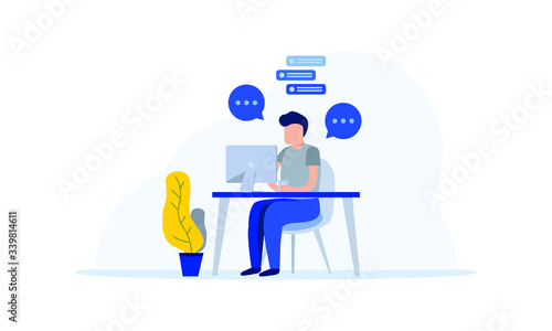 Team communication and project management. Remote employee works on project, boss gives instructions to subordinates. Efficient workflow and successful department. Cartoon flat vector illustration
