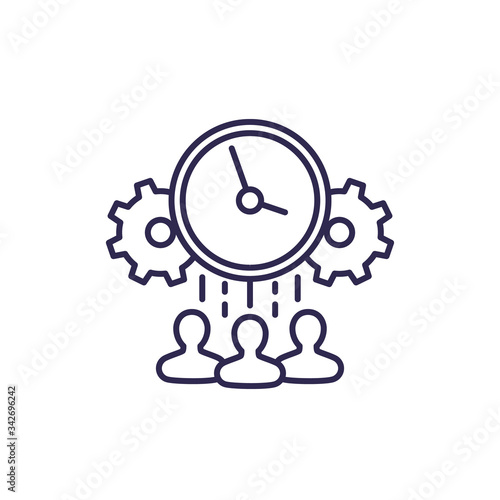 coworking icon, work space, people workplace office, remote company marketing, online employee conference, thin line web symbol on white background - editable stroke vector illustration eps10