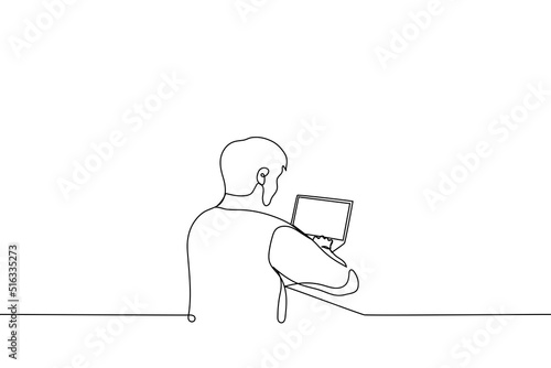 Young man working on laptop in a coworking space, ideal for website banners or blog posts about remote work.