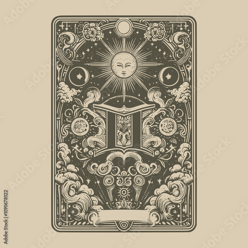 Mystical zodiac constellation crystal tarot card triple moon eye vector graphic bundle set silhouette vector illustration white background