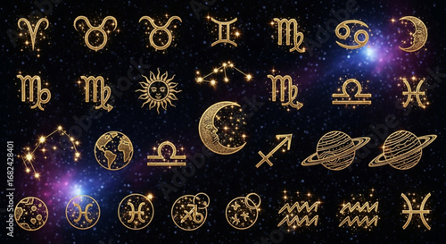 Zodiac signs astrology horoscope libra gemini cancer scorpio astrological symbols divination chart design art