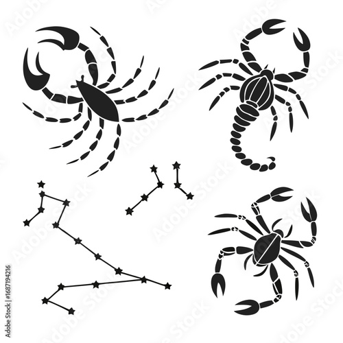 Set of Modern magic witchcraft cards with astrology Scorpio zodiac sign characteristic. Vector illustration