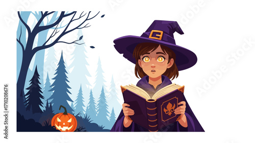 Spell book, magic book of witches with spells in black colour and golden details vector illustration isolated