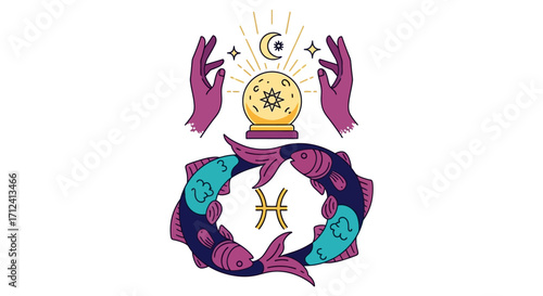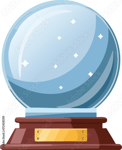 Flat minimalist illustration of a crystal ball with glowing star shapes inside, symbolizing fortune-telling, divination, and mystical Halloween magic.