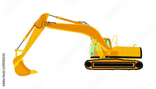 Tractor-scraper. Heavy road machinery, vector, isolated on white