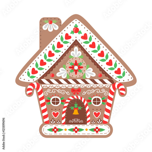 Christmas gingerbread house, candy house. Vector illustration, flat style
