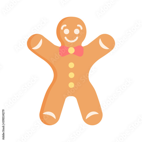 Gingerbread man Christmas cookie character with realistic shadow. Vector illustration.