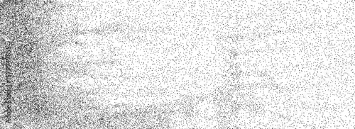 Dirty stipple noise background. Splattered grain grunge texture. Dotted graininess halftone textured overlay. Sand dust grit distressed wallpaper. Black scattered dot backdrop overlay. Vector