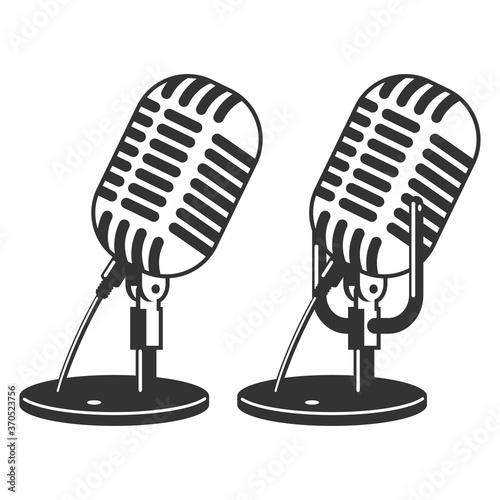 Retro microphone isolated on white. Vintage classic a mic on stand. Good for print, icon, mascot, logo, clip art