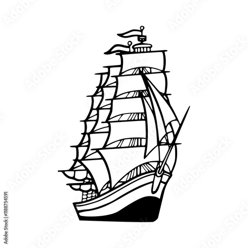 a drawing illustration of a pirate ship isolated on white