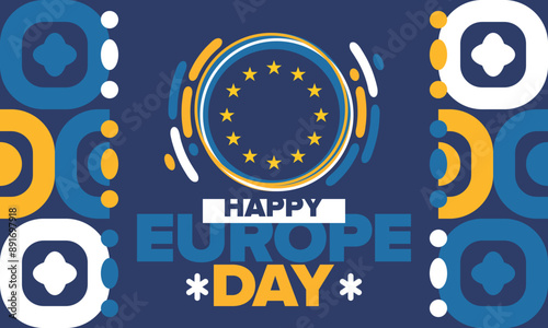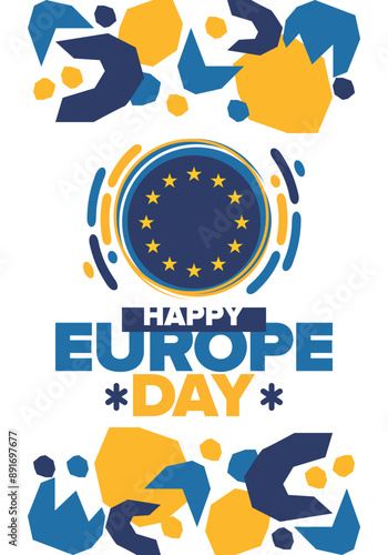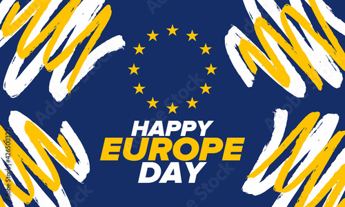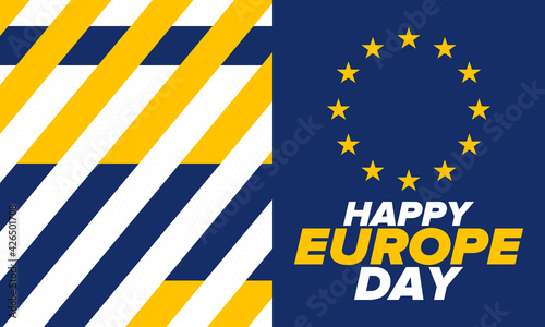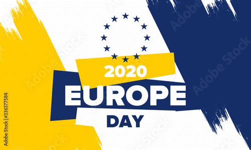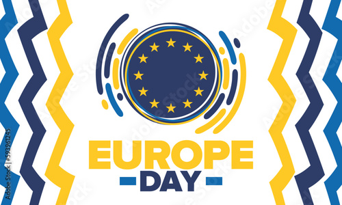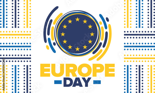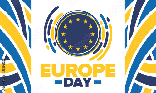 Europe Day. Annual public holiday in May. Is the name of two annual observance days - 5 May by the Council of Europe and 9 May by the European Union. Poster, card, banner and background. Vector