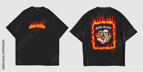 Design t-shirt oversize burn heart