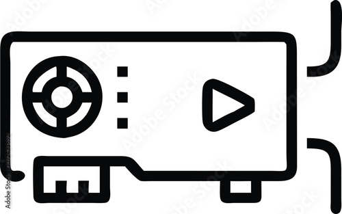Monochrome illustration of a portable power bank with USB ports for charging devices