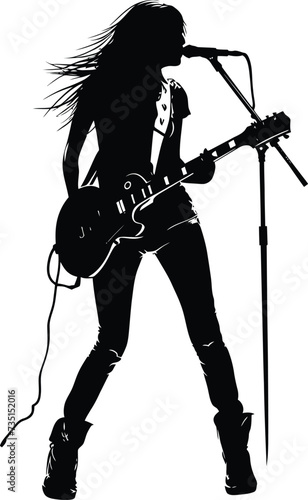 Anime girl with electric bass guitar, dynamic pose, stylish rocker outfit, musical vector illustration for pop culture art, posters, and designs
