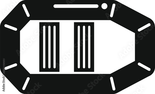 Black Rafting boat icon isolated on white background. Inflatable boat with paddles. Water sports, extreme sports, holiday, vacation. Set icons colorful. Vector