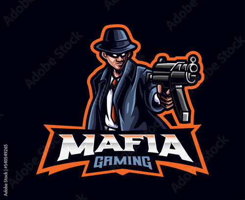 MAFIA logo character silhouette man head in hat. Vintage vector illustration