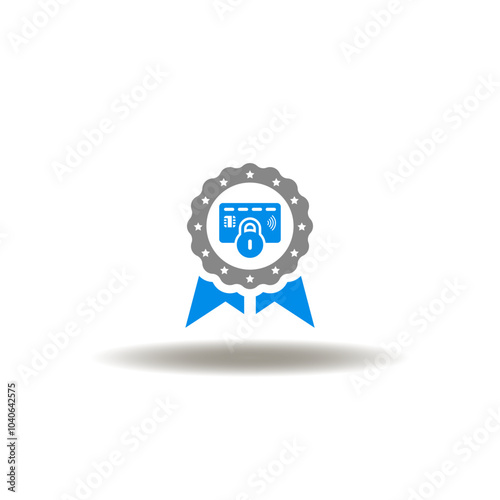 Rosette icon set featuring 1, tick, and star symbols. First prize icon with premium quality ribbon. Best, high standard, or top-quality product vector symbols