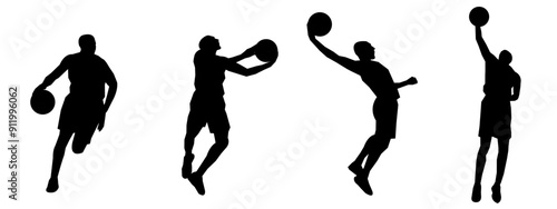 Vector set of male basketball players silhouettes, isolated vector