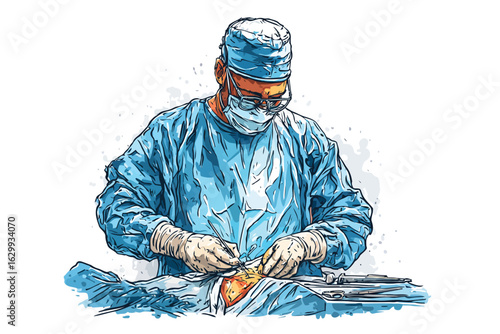 Surgeon performing an operation isolated