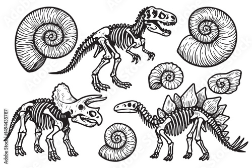 Explore dinosaur skeletons fossil remains and prehistoric creatures paleontological illustration ancient life forms silhouette