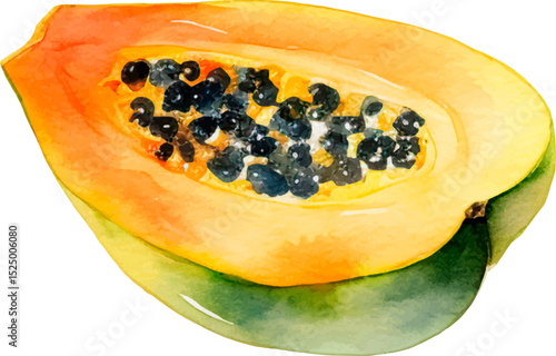 Hand drawn watercolor painting on white background. Vector illustration of fruit papaya