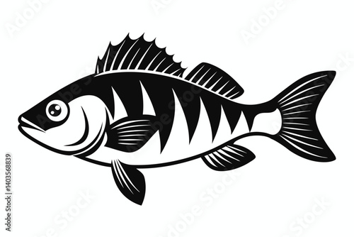 A hand-drawn black-and-white illustration of a large perch with prominent dorsal spines. Ideal for fishing guides, wildlife art, or aquatic-themed designs
