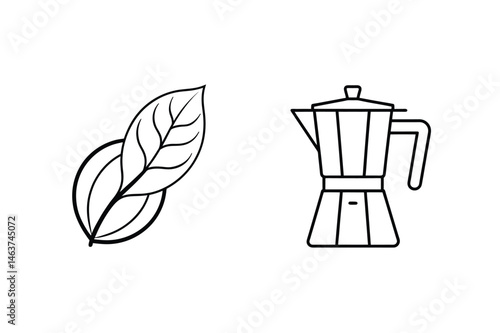 Moka Pot Line Art Collection Italian Coffee Maker Espresso Maker Iconography Breakfast Beverage Illustration Vintage Stove Top Percolator Design